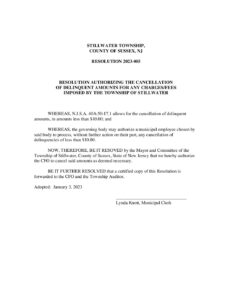 2023-005 Cancellation of Delinquencies of less than 10 dollars