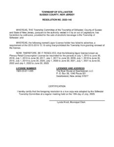 2023-140 Rescinding of ABC license forThe Boat House on Swartswood Lake
