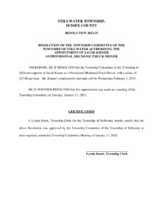2023-25 Appoitment of Jacob Kiener as Provisional Mechanic-truck driver