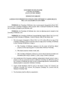 2026-033 PERMITTING STILLWATER TOWNSHIP TO ASSESS BLOCK 1901, LOT 6.03, HAMPTON TOWNSHIP