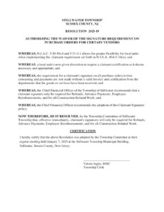 2025-019 AUTHORIZING THE WAIVER OF THE SIGNATURE REQUIREMENT ON PURCHASE ORDERS FOR CERTAIN VENDORS