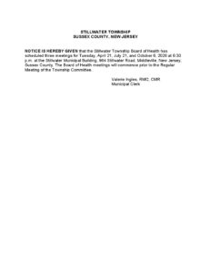 2026 Board of Health Meeting Notice