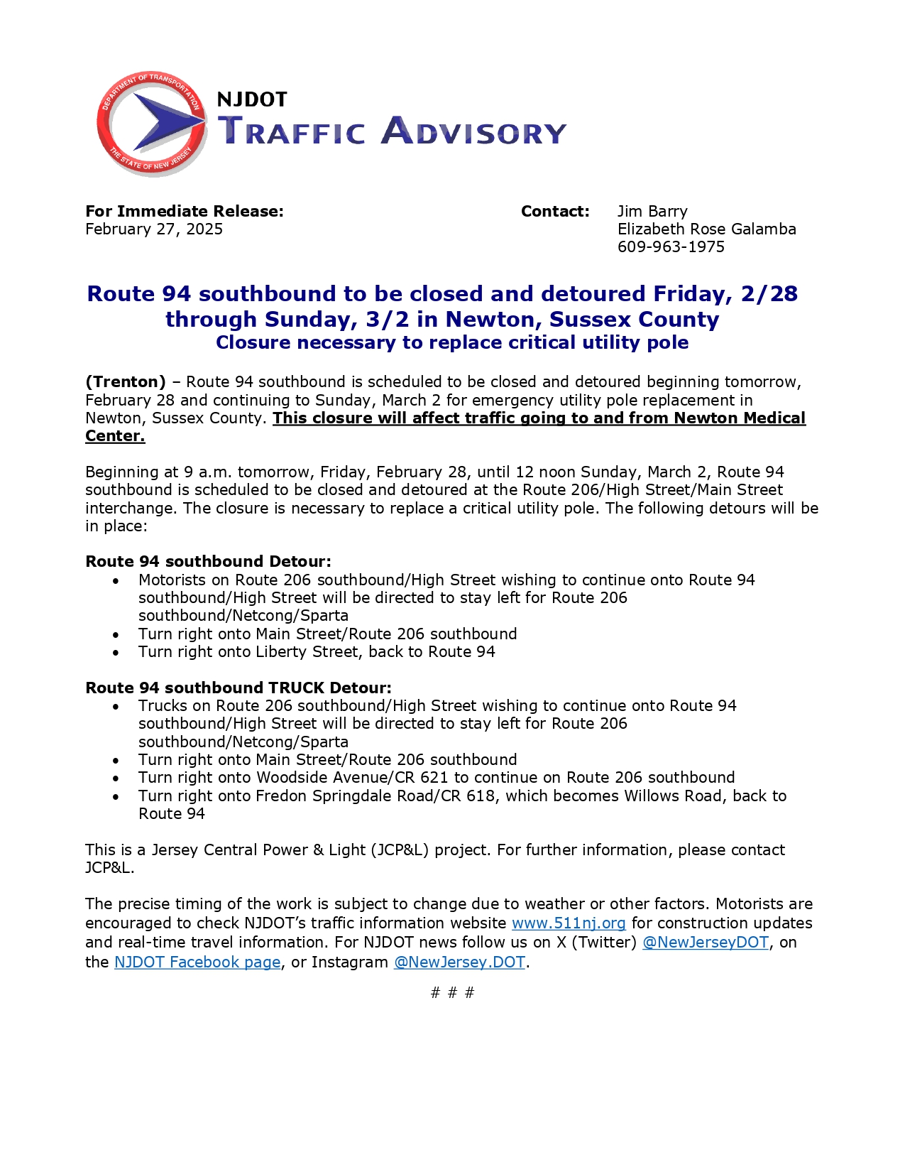 Route 94 Detour 2/28-3/2